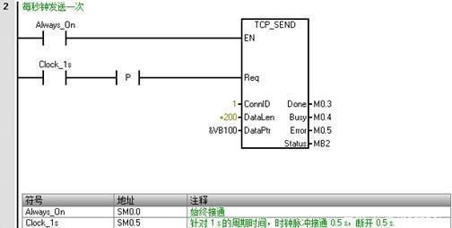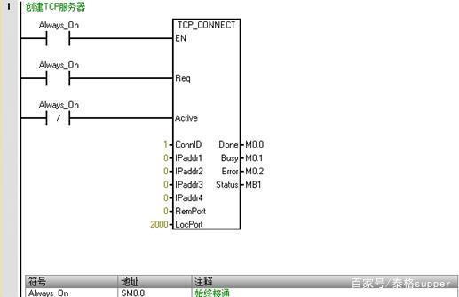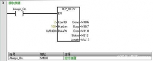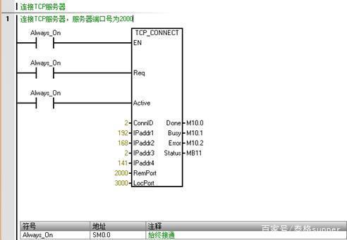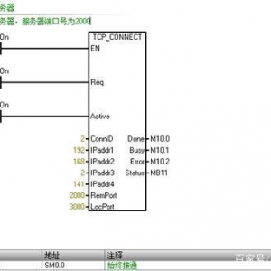 對于自動化控制或電氣工程師來說,西門子PLC是每個人都非常熟悉的一款PLC品牌;而對于上位機開發工程師來說,Socket通信或TCP/IP協議也是必須要掌握的一種通信方式。今天跟大家聊聊Socket通信的那些事兒。 相比較而言,西門子PLC對Socket通信的支持性是很不錯的。如果你在使用西門子軟件或者逛西門子論壇時,發現一個詞叫做Open User Communication或開放式通信,沒錯,那其實就是我們說的Socket通信方式。關于這一點,我們可以從以下兩張圖中看出,分別為S7-200Smart編程軟件Micro/Win Smart V2.5及博途TIA V15.1編程軟件中關于通信庫的部分截圖: 我們可以看到無論是西門子的中高端PLC還是低端PLC,都是支持開放式TCP/UDP通信的,既然都支持,我們來看下如何實現。 眾所周知,對于Socket通信來說,是可以支持TCP、UDP等多種通信方式,但是今天在這里,我們主要針對TCP這種通信方式。除此以外,大家都知道,Socket會存在服務器和客戶端的說法,也就意味著,同樣是使用Socket通信,我們仍然需要確定到底PLC是作為服務器還是作為客戶端,因為不管對于PLC編程或者上位機開發來說,這兩種方式都是完全不同的,下面做具體介紹。 一、PLC作為TCP服務器的實戰應用 (1) PLC編程 1.1創建一個TCPServer的子程序,拖拽一個TCP_CONNECT的庫指令,對于該指令的每個引腳對應的含義,大家可以按下F1直接獲取在線幫助,程序段1編寫如下圖所示: 1.2 拖拽一個TCP_SEND的庫指令,對于該指令的每個引腳填寫,ConnID為1,Req為觸發條件,必須為沿信號,這里為了方便,直接使用1秒的脈沖信號,DataLen及DataPtr為發送的起始字節指針及發送的字節長度,程序段2如下圖所示: 1.3 拖拽一個TCP_RECV的庫指令,對于該指令的每個引腳填寫,ConnID統一為1,MaxLen為接受的最大程度,DataPtr表示接收字節存放的起始位置,程序段3如下圖所示: 1.4 最后需要編譯,編譯會提示需要給庫分配地址,點擊文件下的存儲器,給該庫分配地址即可,然后在MAIN主程序中調用TCPServer這個子程序,并下載到PLC中,PLC編程部分結束。 (2)TCP調試助手測試 如果PLC程序編寫沒問題,打開一個網絡調試助手,輸入對應的IP地址及端口號,即可連接上服務器。 連接服務器后,PLC端會自動每隔一秒發送200個字節數據過來,這200個字節即對應VB100-VB299的值。 (3)上位機客戶端軟件開發 通過與編程軟件的狀態圖標進行對照,可以實時讀取PLC數據,并隨時設置相應的數值。 二、PLC作為TCP客戶端的實戰應用 1.1 創建一個TCPClient的子程序,拖拽一個TCP_CONNECT的庫指令,與服務器程序不同的是,這里需要把Active設置為ON,同時IP地址和端口號需要根據上位機實際情況填寫,程序段1編寫如下圖所示: 1.2 拖拽一個TCP_SEND的庫指令,對于該指令的每個引腳填寫,ConnID為2,Req為觸發條件,必須為沿信號,這里為了方便,直接使用1秒的脈沖信號,DataLen及DataPtr為發送的起始字節指針及發送的字節長度,程序段2如下圖所示: 1.3 拖拽一個TCP_RECV的庫指令,對于該指令的每個引腳填寫,ConnID統一為2,MaxLen為接受的最大程度,DataPtr表示接收字節存放的起始位置,程序段3如下圖所示: 1.4 最后需要編譯,如果已經編寫過服務器程序,這里就不需要分配地址了,直接在MAIN主程序中調用TCPClient這個子程序,并下載到PLC中,PLC編程部分結束。 如果PLC程序編寫沒問題,打開一個網絡調試助手,設置模式為TCP Server,輸入端口號為2000,即可開啟服務器。 服務器開啟后,PLC端會自動連接服務器,并且每隔一秒發送100個字節數據過來,這100個字節即對應VB500-VB599的值。 (3)上位機服務器軟件開發 通過與狀態圖標進行對比,驗證可以正常讀取和寫入PLC數據。 三、整體總結 后續通過進一步測試,驗證PLC可以同時作為服務器和客戶端與上位機進行通信。 本次主要針對西門子PLC的開放式TCP通信作了較為詳細地闡述,由于篇幅有限,無法將上位機部分的具體編程代碼進行分析。 |